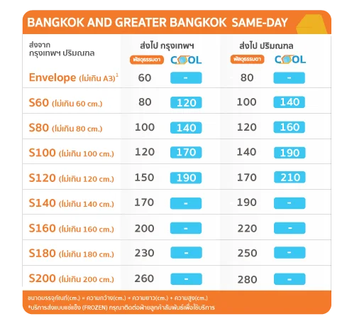 คิดราคาตามขนาดของพัสดุ น้ำหนักสูงสุดถึง 25 กิโลกรัม ฟรีบริการเข้ารับเมื่อส่งมากกว่า 3 รายการขึ้นไป